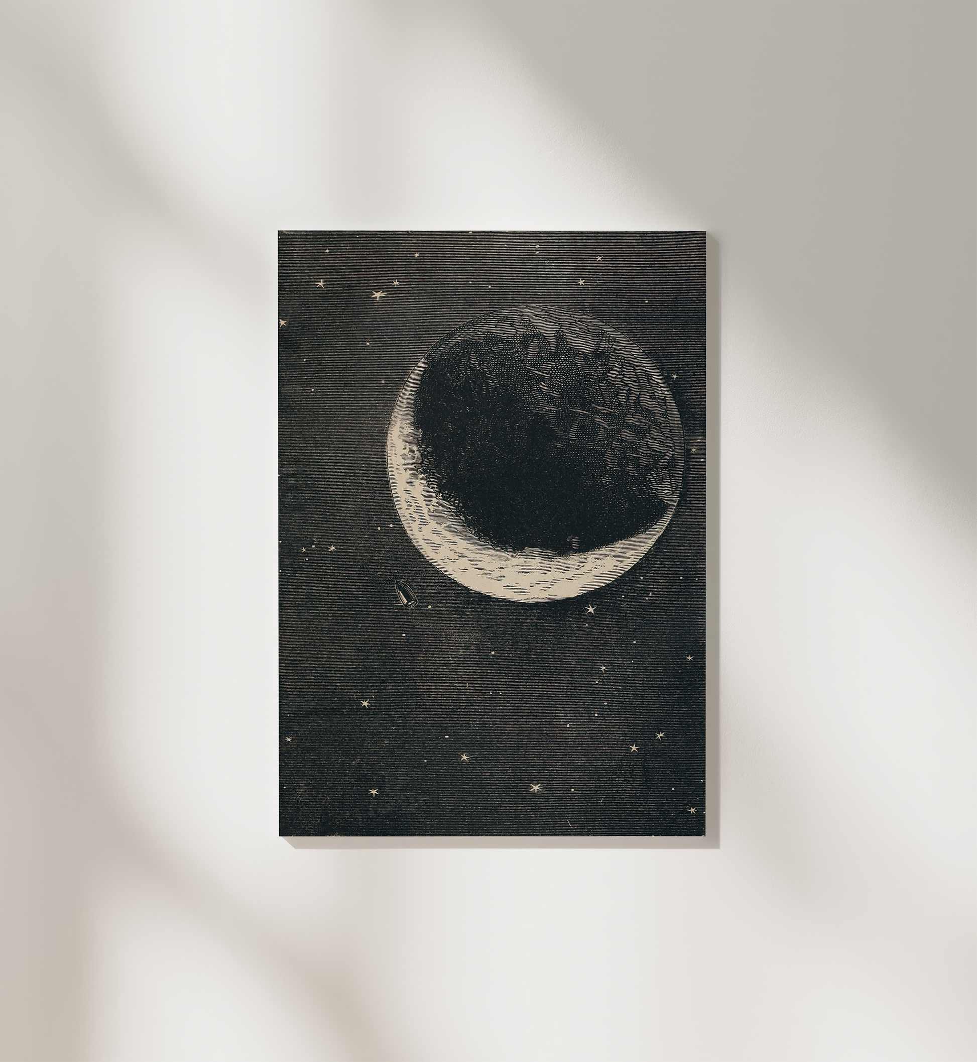 A spectacular colored print from Jules Verne’s novel “Around the Moon,” originally published in 1865. The illustration was drawn by Émile-Antoine Bayard and Alphonse de Neuville, and engraved by Henri Théophile Hildibrand.